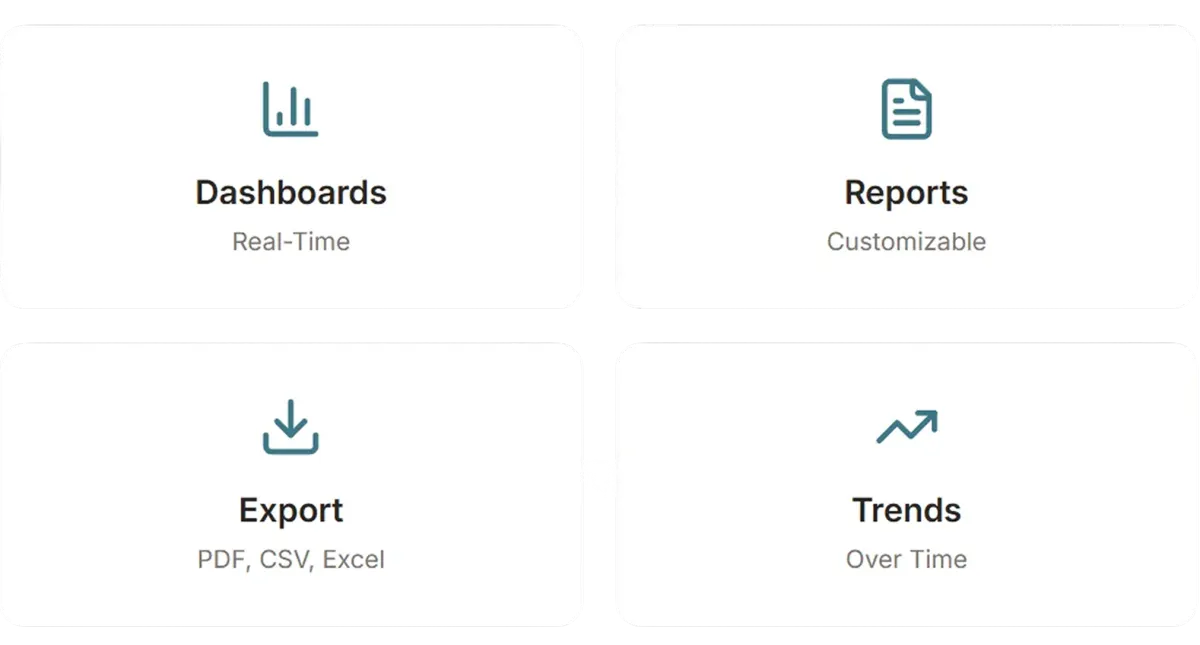 Download reports as PDF, CSV, or Excel. Perfect for sharing and record-keeping.